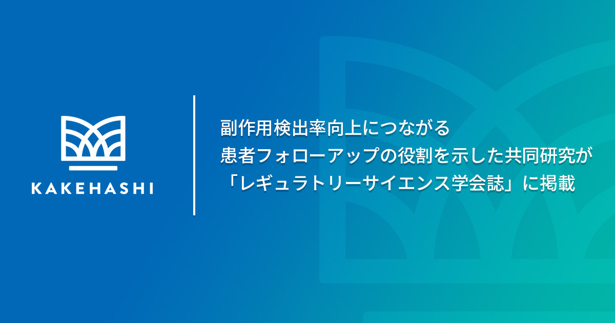 株式会社カケハシ(本社:東京都港区、代表取締役社長:中尾 豊、代表取締役CEO: 中川 貴史、以下、当社)は、就実大学、東京薬科大学と共同研究を実施し、薬局薬剤師の患者フォローアップが服薬指導時の副作用検出率向上に寄与することを定量的に示しました。本研究成果が、このたび一般社団法人レギュラトリーサイエンス学会が発刊する「レギュラトリーサイエンス学会誌」に論文として掲載されましたので、お知らせします。